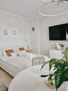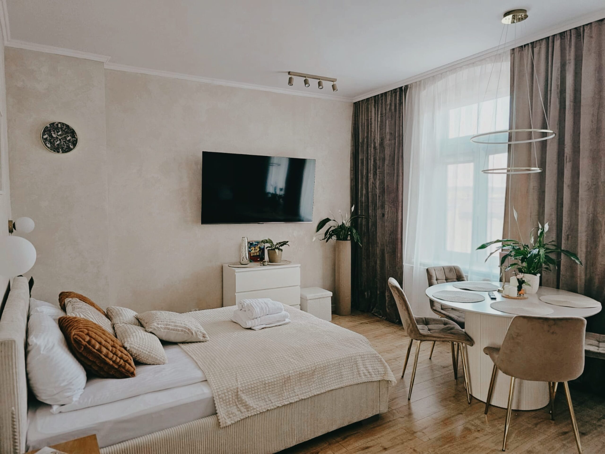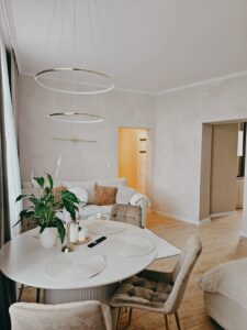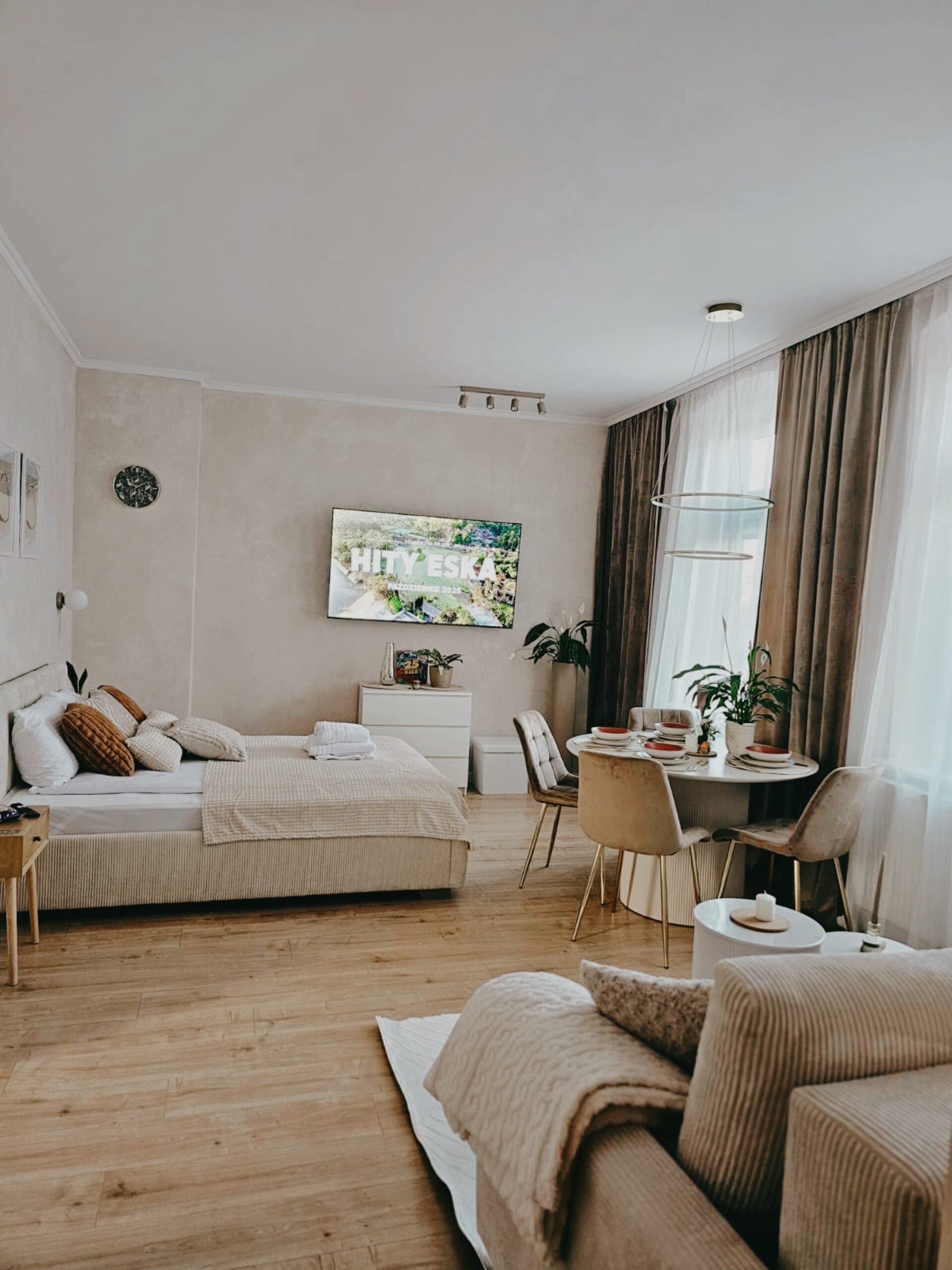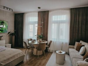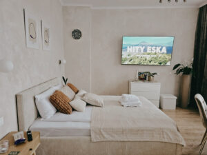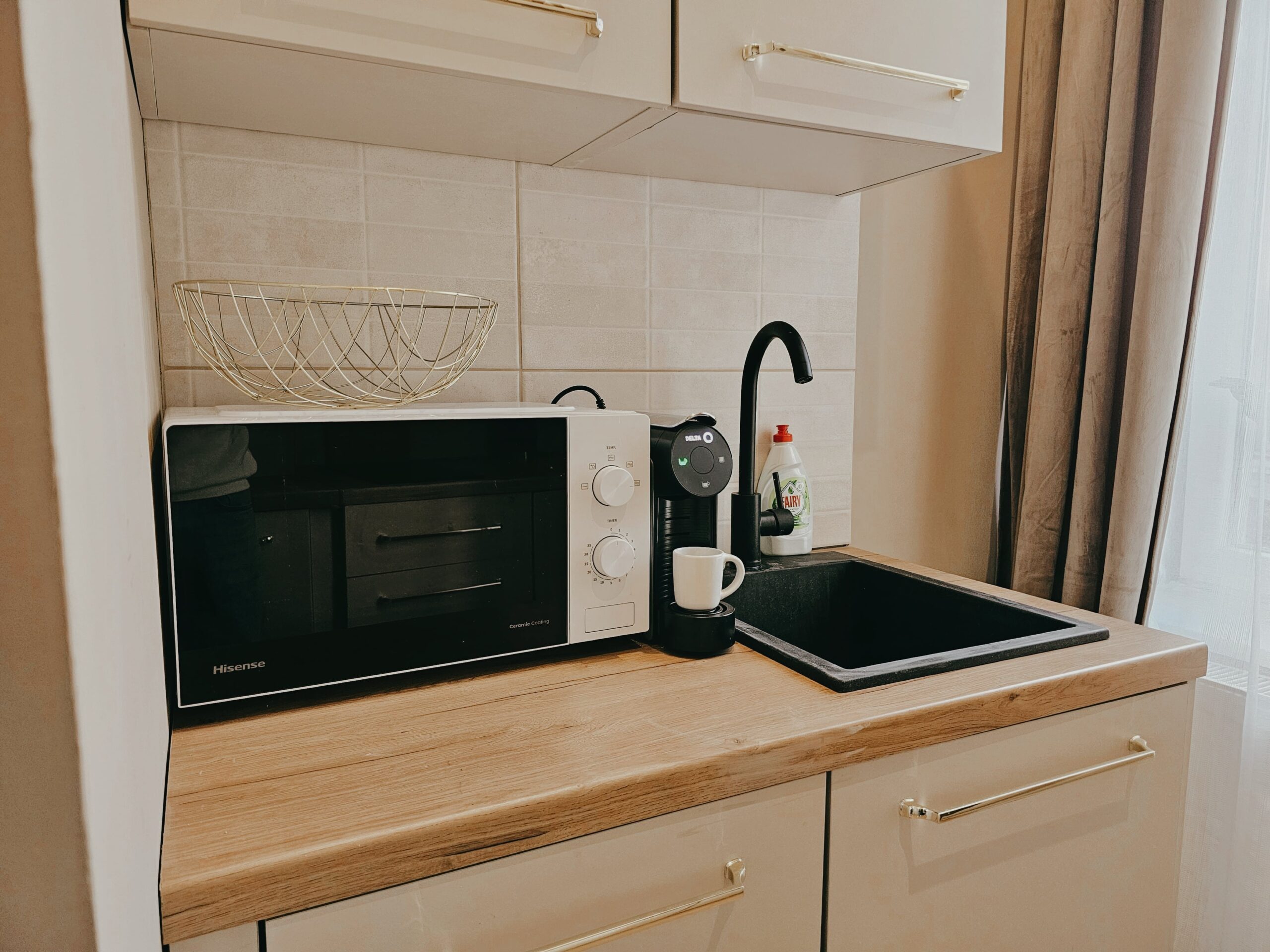 Tu wszystko zaczyna się od poranka. Światło wpada do kuchni miękko i naturalnie, a pierwsza kawa smakuje lepiej, gdy pijesz ją z widokiem na wieżę ratusza. To właśnie tutaj, przy kuchennym blacie, Toruń budzi się razem z Tobą — spokojnie, bez pośpiechu, w swoim rytmie. Apartament został zaprojektowany tak, aby dać poczucie lekkości i komfortu. Naturalne kolory, dopracowane detale i ciepłe wykończenia tworzą przestrzeń, w której od razu czujesz się swobodnie. Kuchnia — jasna, funkcjonalna i pełna światła — staje się sercem poranków, a widok za oknem codziennym rytuałem, do którego chce się wracać. Po remoncie apartament zyskał nową energię, zachowując to, co najważniejsze: klimat toruńskiej starówki, spokój i autentyczność miejsca. To idealna przestrzeń na romantyczny wyjazd, weekendowy city break albo po prostu chwilę oddechu w jednym z najpiękniejszych miast w Polsce — z kawą w dłoni i widokiem, który naprawdę robi wrażenie.